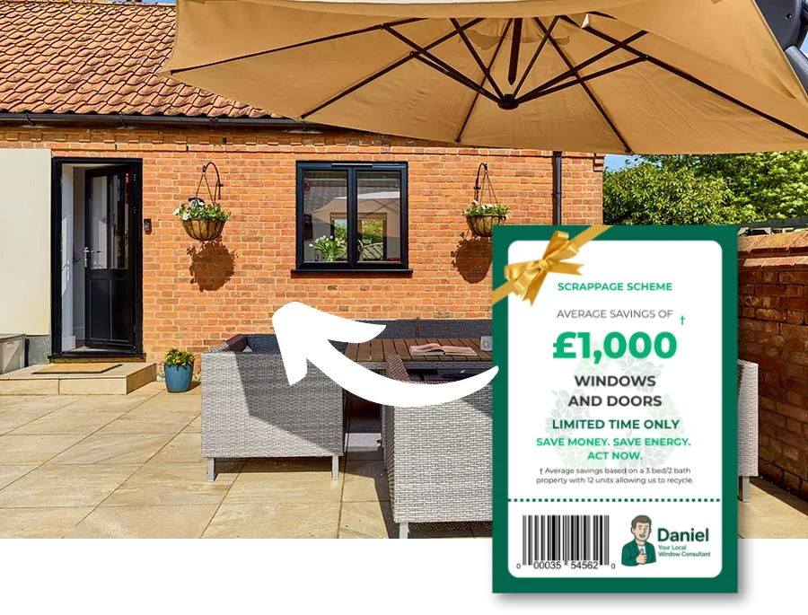 Our Scrappage Scheme helps you to recycle your old windows and doors in return for average savings of £1,000† off new ones professionally installed by us.